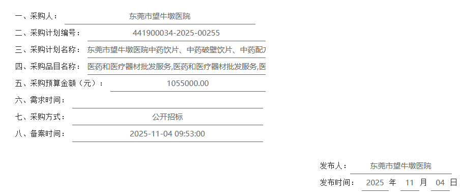 【东莞市望牛墩医院】广东省东莞市望牛墩医院中药饮片、中药破壁饮片、中药配方颗粒配送服务采购项目
