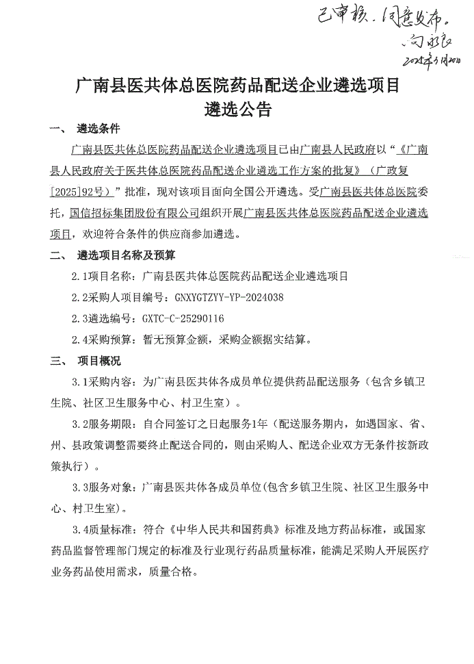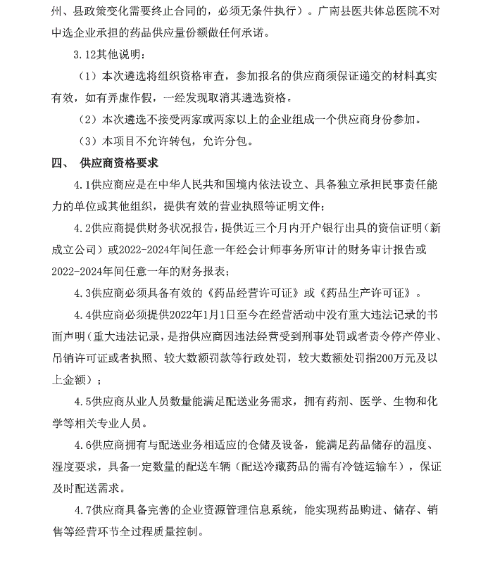 【广南县医共体总医院】云南省文山壮族苗族自治州广南县医共体总医院药品配送企业遴选项目招标公告