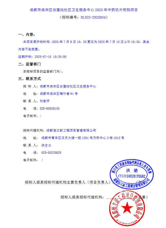 【成都市成华区白莲池社区卫生服务中心】四川省成都市成华区白莲池社区卫生服务中心2025年中药饮片采购项目更正