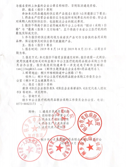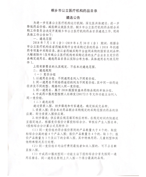 【嘉兴】浙江省嘉兴市桐乡市公立医疗机构药品目录遴选公告