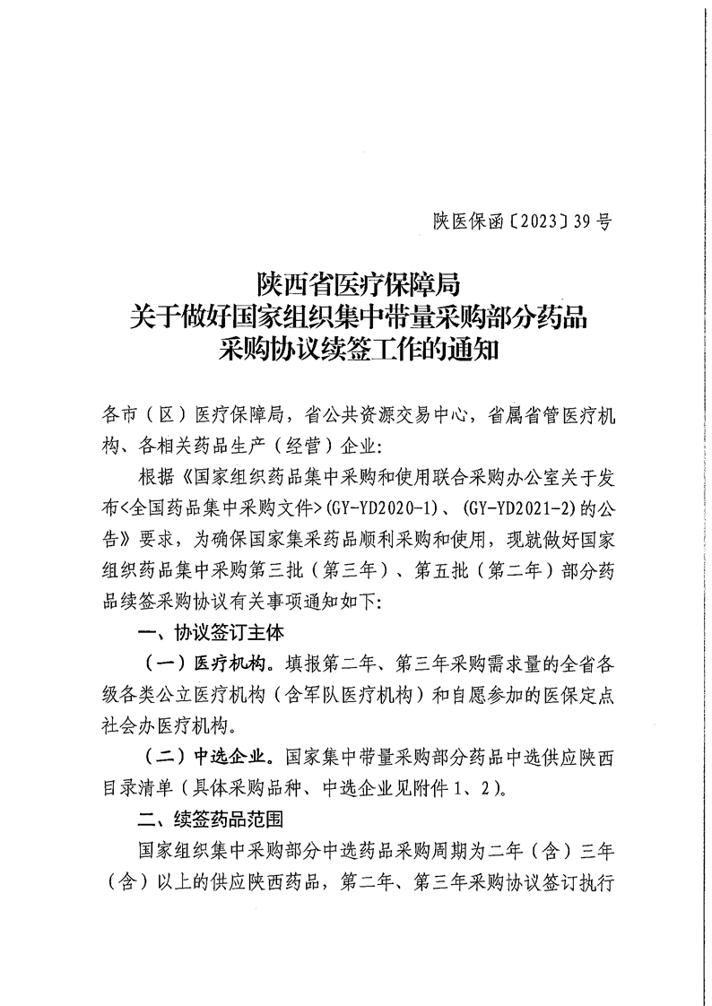 (二)中选企业。国家集中带量采购部分药品中选供应陕西目录清单(具体采购品种、中选企业见附件1、2)。