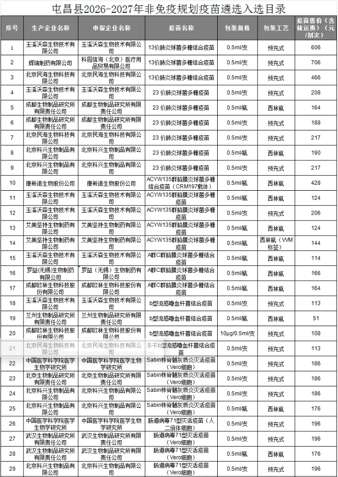 经过公平、公正、公开的评审程序,确定以下疫苗为屯昌县2026年-2027年度非免疫规划疫苗遴选入选品种(具体目录详见附件《屯昌县2026年-2027年非免疫规划疫苗遴选入选目录》)。