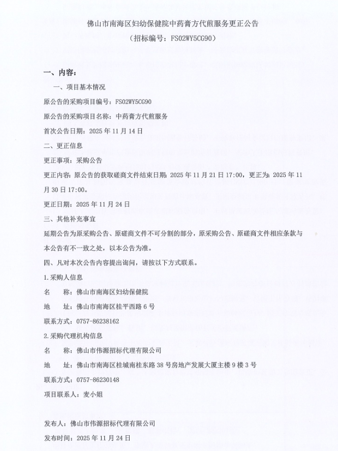 【佛山市南海区妇幼保健院】广东省佛山市南海区妇幼保健院中药膏方代煎服务更正公告