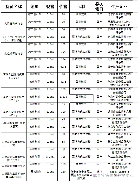 二、公示内容:成县2025年非免疫规划疫苗遴选结果(见附表)。