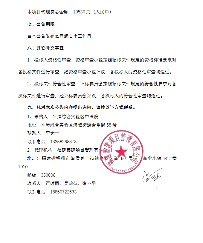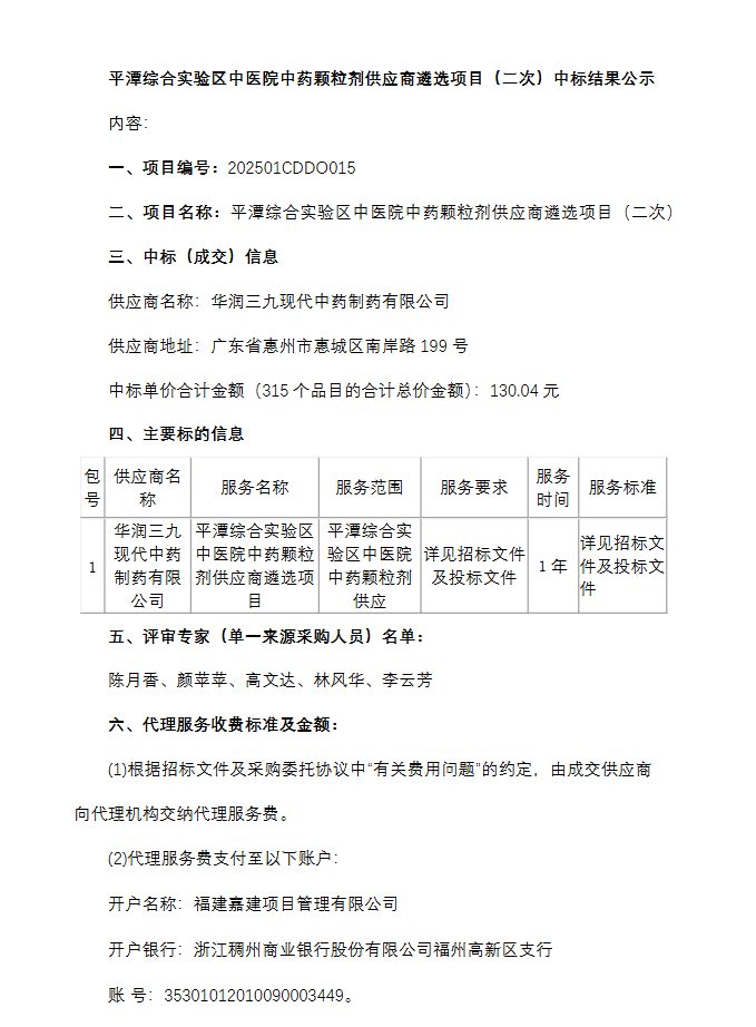 【福州市平潭综合实验区中医院】福建省平潭综合实验区中医院中药颗粒剂供应商遴选项目(二次)中标结果公示