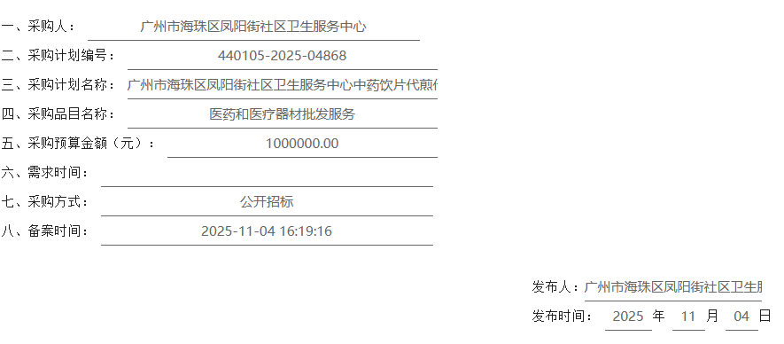 【广州市海珠区凤阳街社区卫生服务中心】广东省广州市海珠区凤阳街社区卫生服务中心中药饮片代煎代配及膏方加工服务采购项目