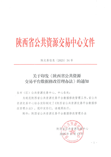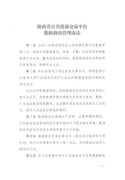 【渭南】关于印发《陕西省公共资源交易平台数据修改管理办法》的通知