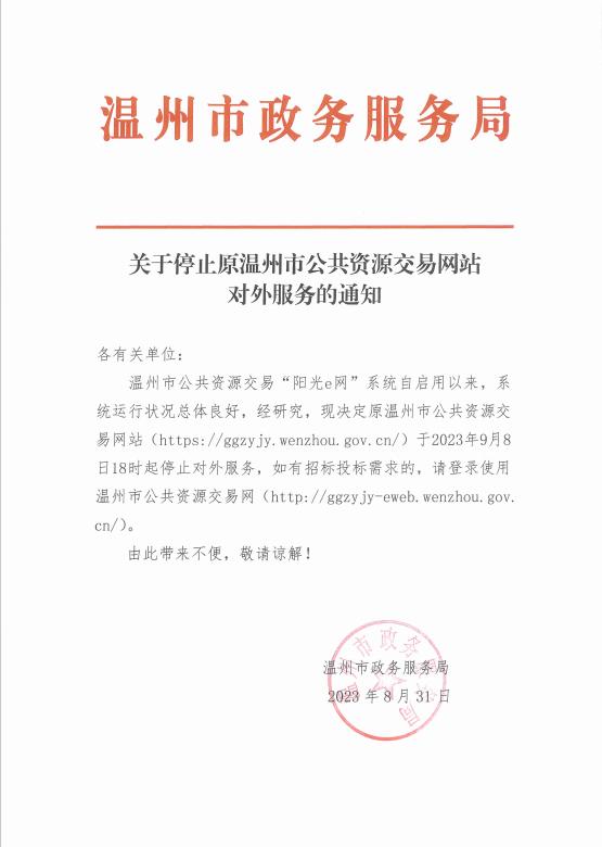 【温州】关于停止原温州市公共资源交易网站对外服务的通知