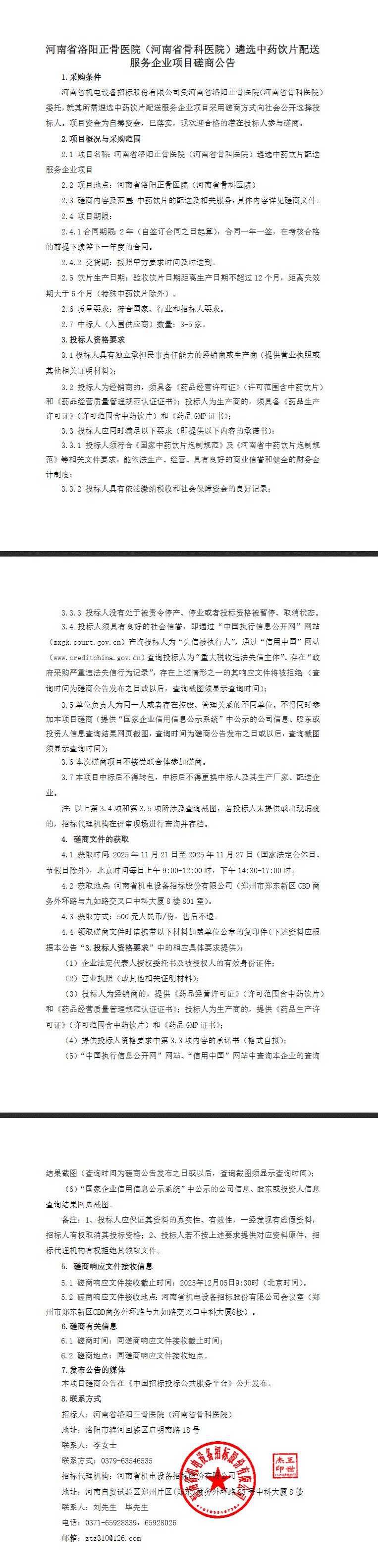 【洛阳正骨医院】河南省洛阳正骨医院(河南省骨科医院)遴选中药饮片配送服务企业项目磋商公告