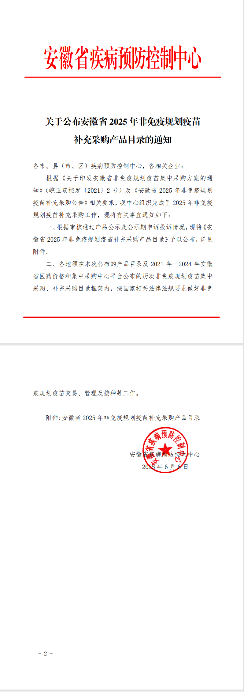 【滁州】关于调整部分非免疫规划疫苗采购价格的通知