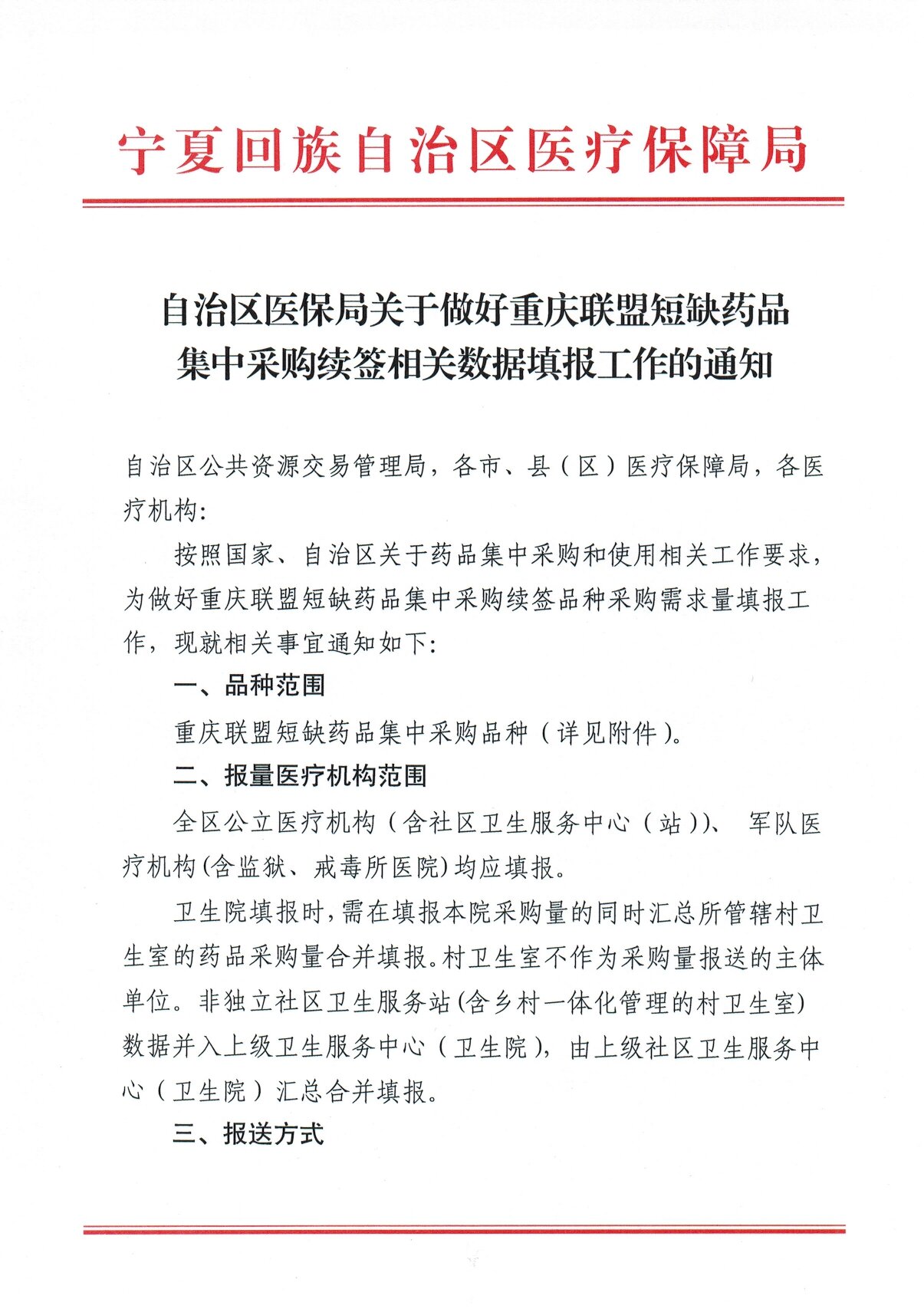 按照国家、自治区关于药品集中采购和使用相关工作要求,为做好重庆联盟短缺药品集中采购续签品种采购需求量填报工作,现就相关事宜通知如下: