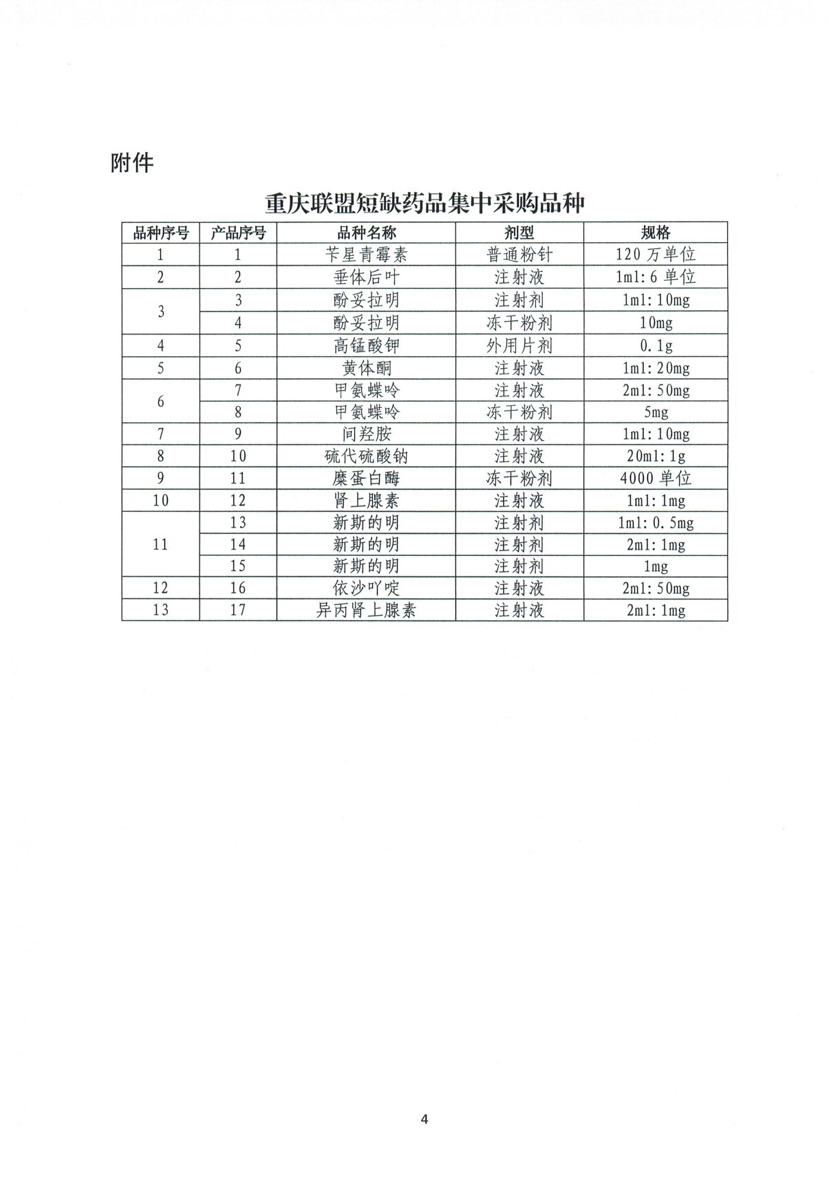 附件:重庆联盟短缺药品集中采购品种