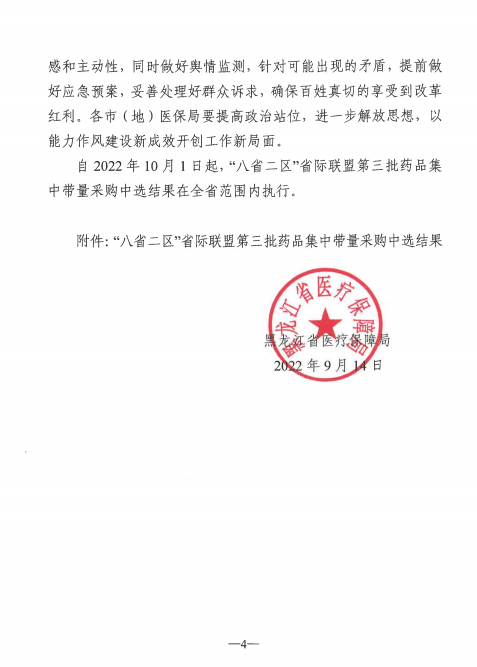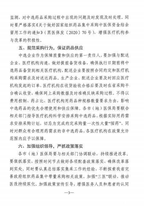 【黑龙江】黑龙江省关于做好省际联盟药品集中带量采购落实工作的通知