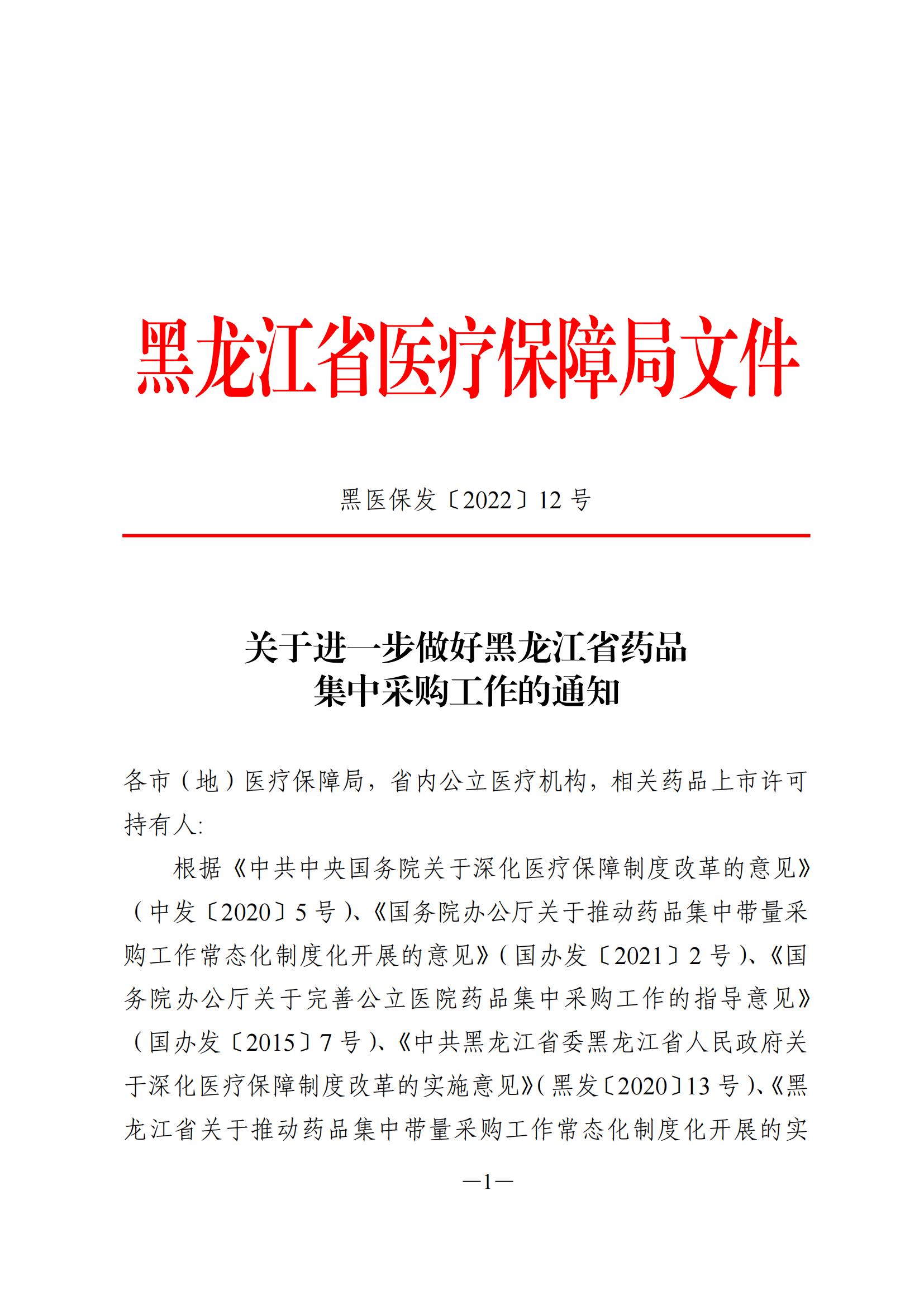 【黑龙江】关于进一步做好黑龙江省药品集中采购工作的通知