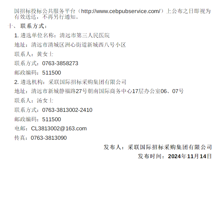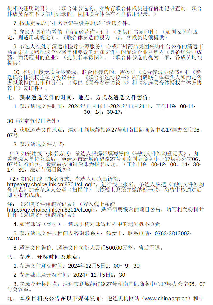 【清远市第三人民医院】广东省清远市第三人民医院药品配送采购项目遴选公告