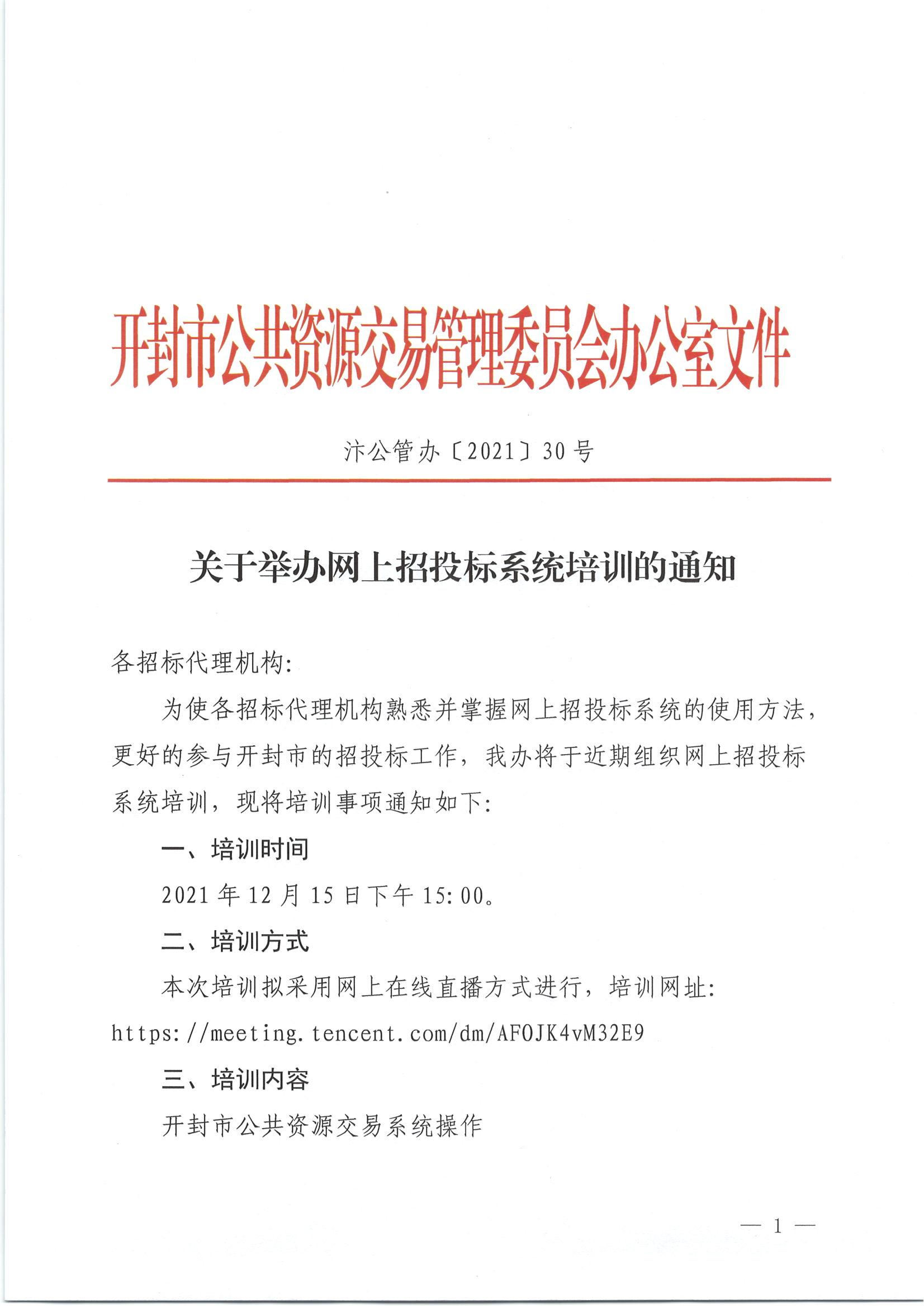 【开封】河南省开封市关于举办网上招投标系统培训的通知