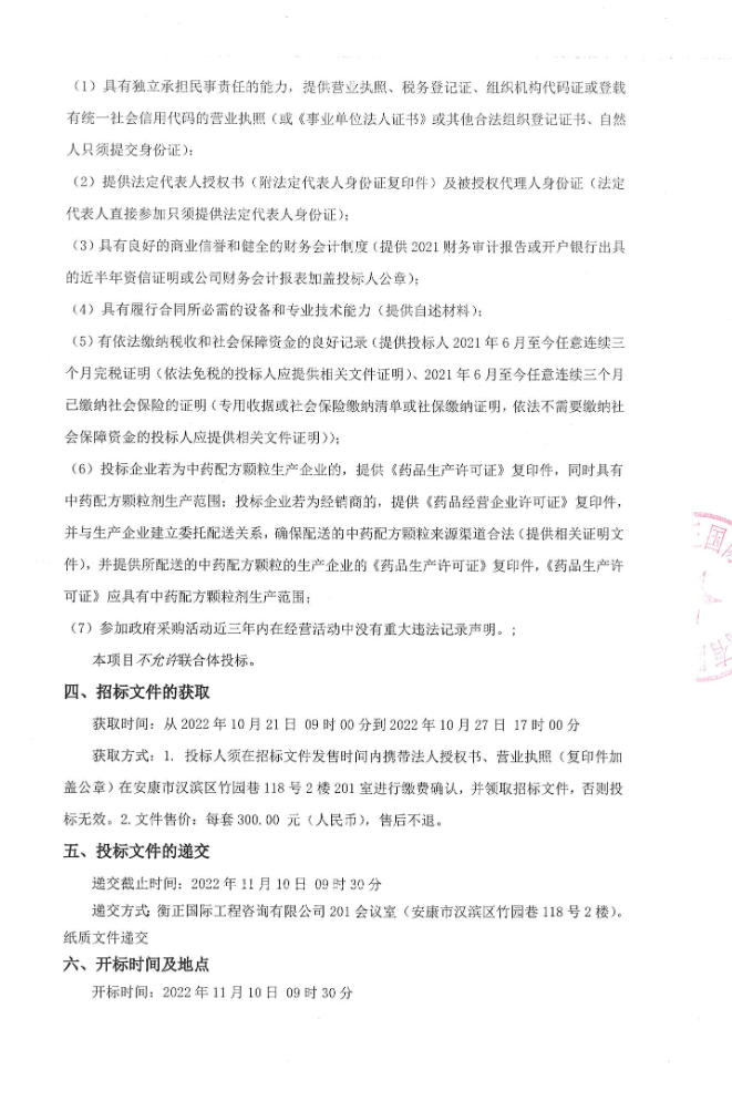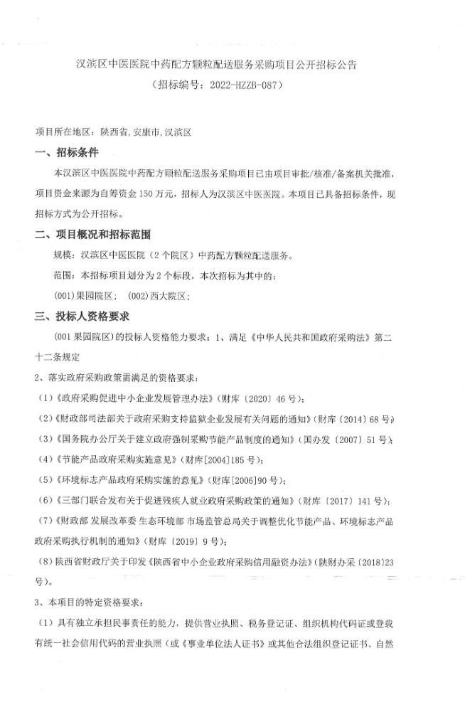 【陕西省安康市汉滨区中医医院】中药配方颗粒配送服务采购项目公开招标公告