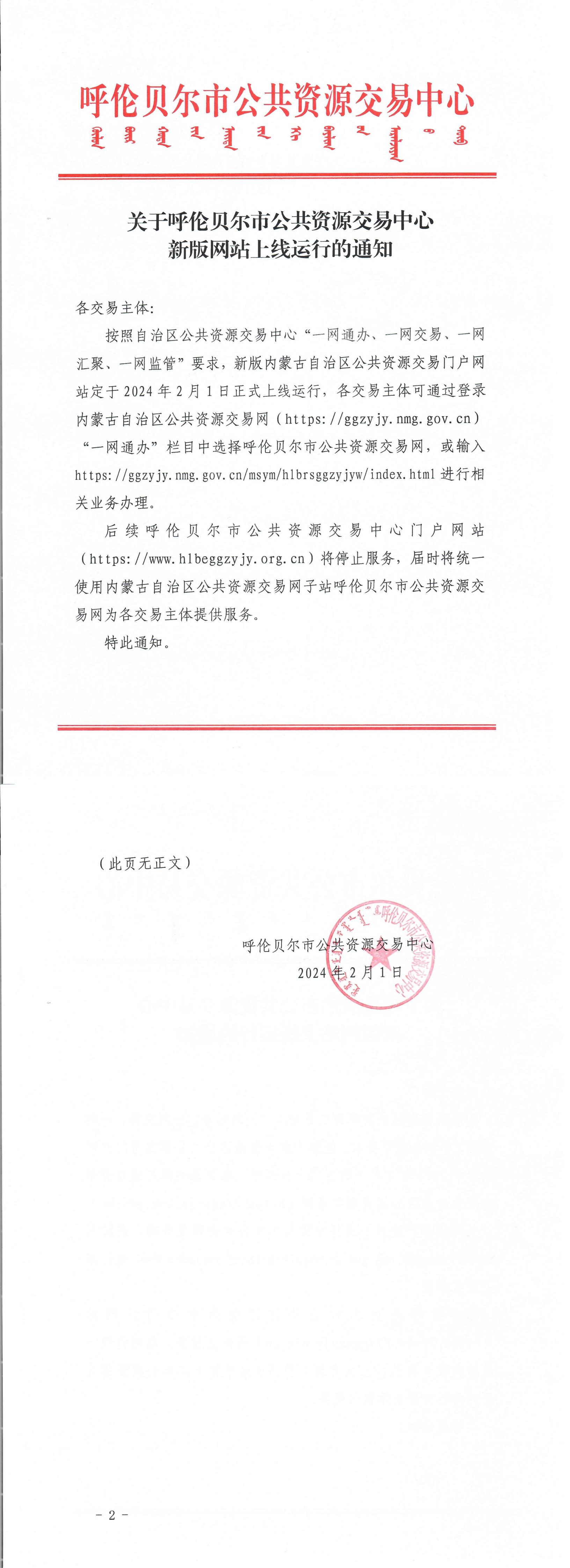 【呼伦贝尔】关于呼伦贝尔市公共资源交易中心新版网站上线运行的通知