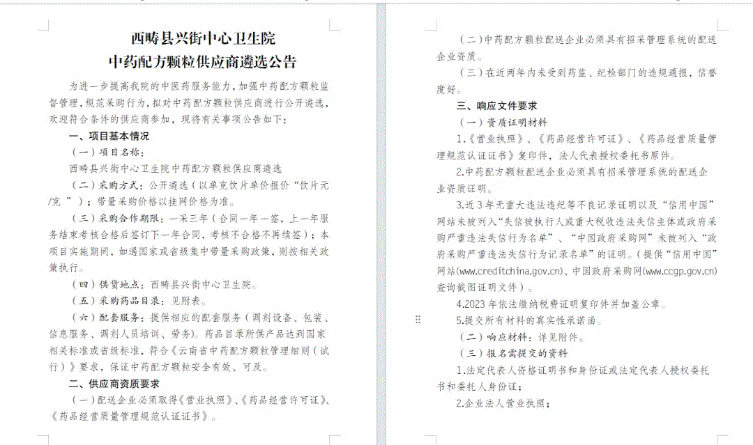 【文山壮族苗族自治州西畴县兴街中心卫生院】云南省文山壮族苗族自治州西畴县兴街中心卫生院中药配方颗粒供应商遴选公告