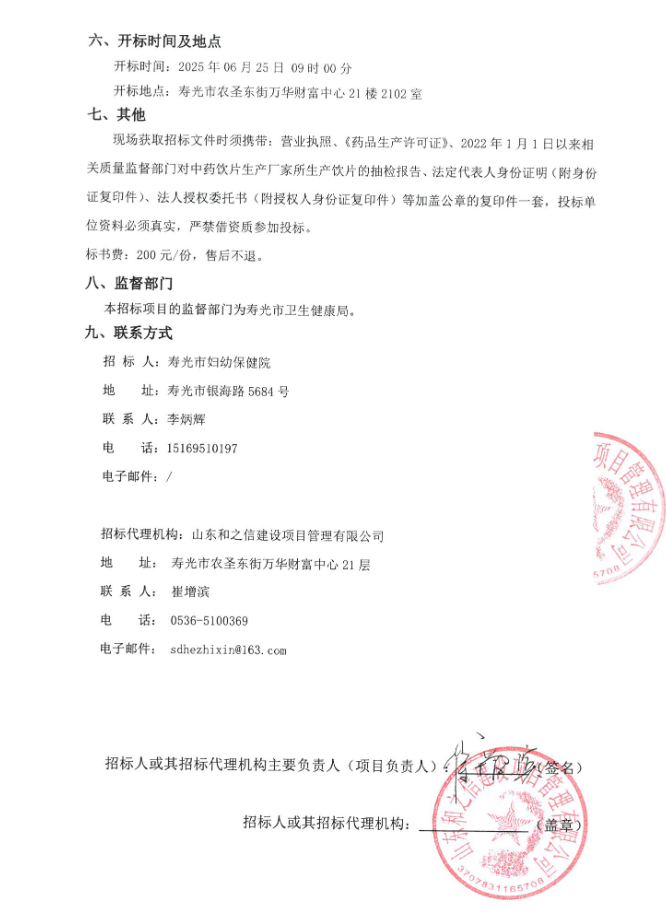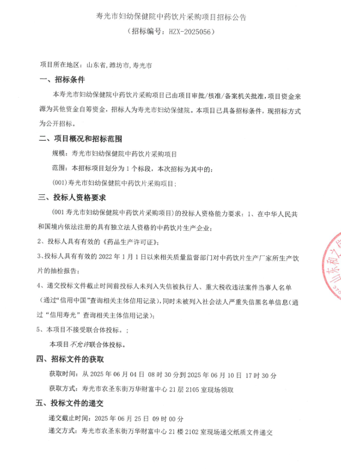 【潍坊市寿光市妇幼保健院】山东省寿光市妇幼保健院中药饮片采购项目招标公告