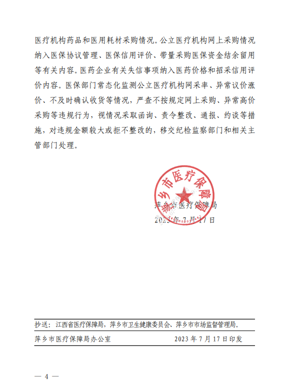 【萍乡】萍乡市医疗保障局关于加强公立医疗机构药品医用耗材网上采购工作的通知
