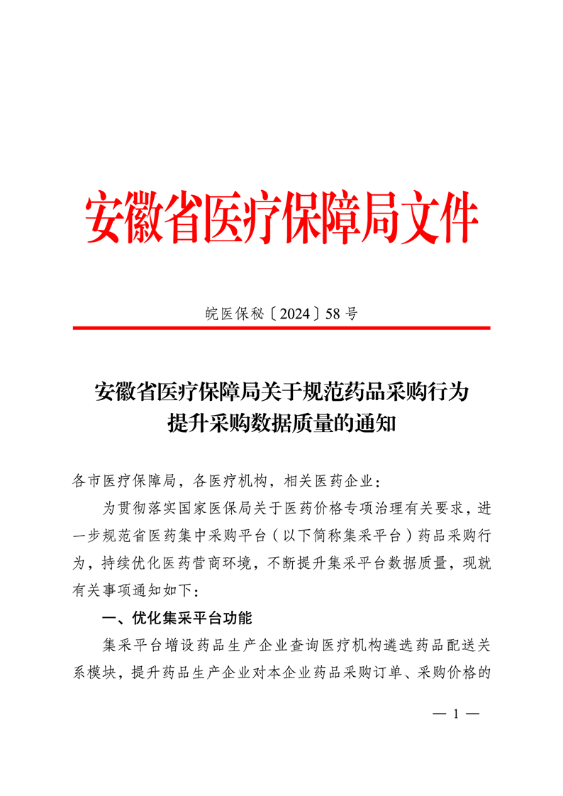 【淮北】安徽省医疗保障局关于规范药品采购行为提升采购数据质量的通知