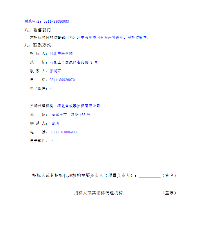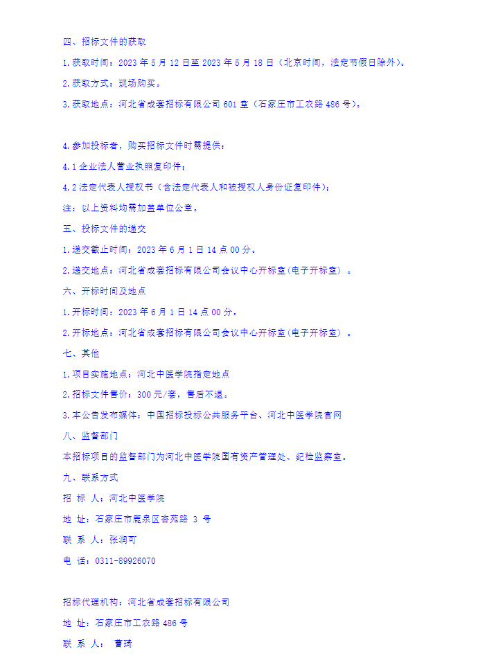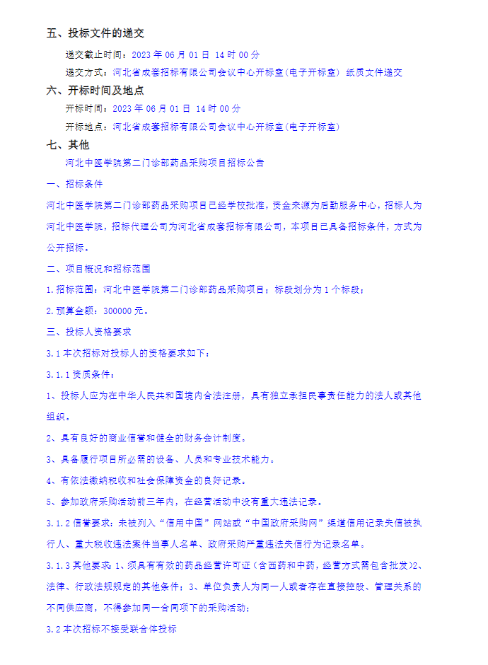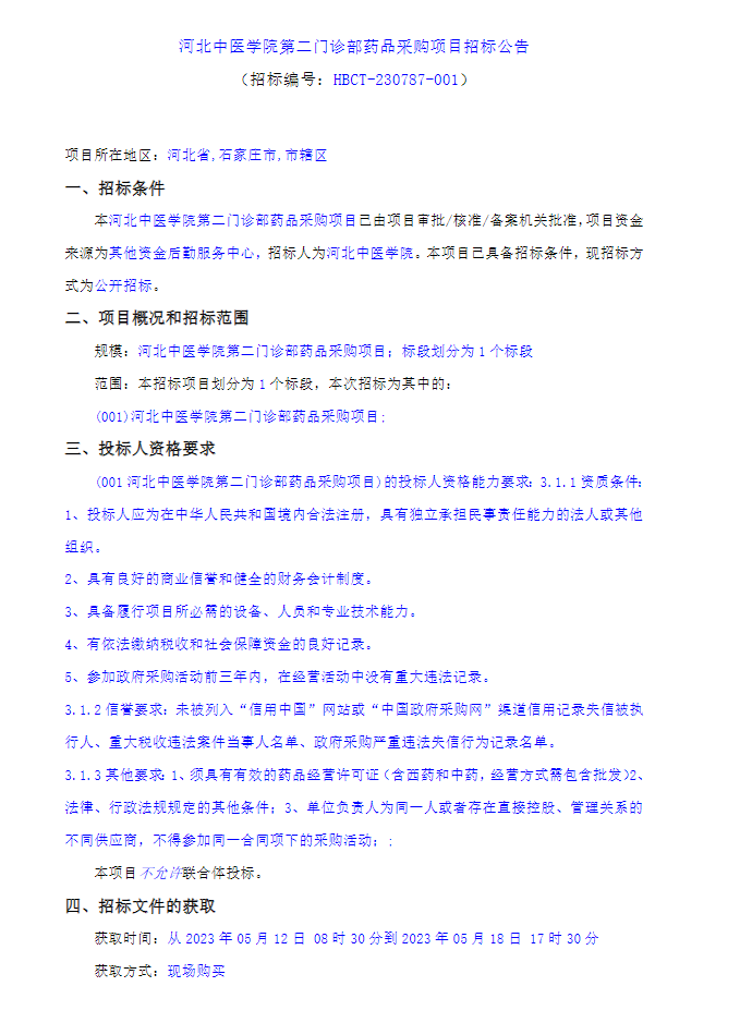 【河北中医学院】河北中医学院第二门诊部药品采购项目招标公告