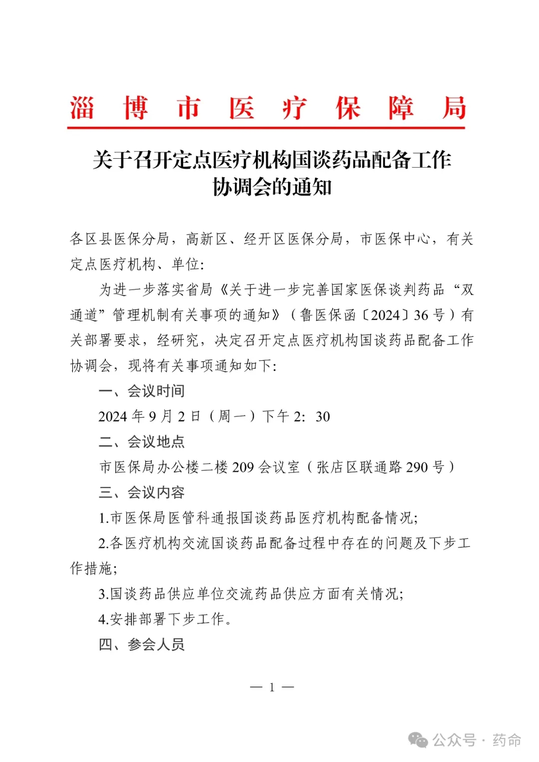 【淄博】关于召开定点医疗机构国谈药品配备工作协调会的通知