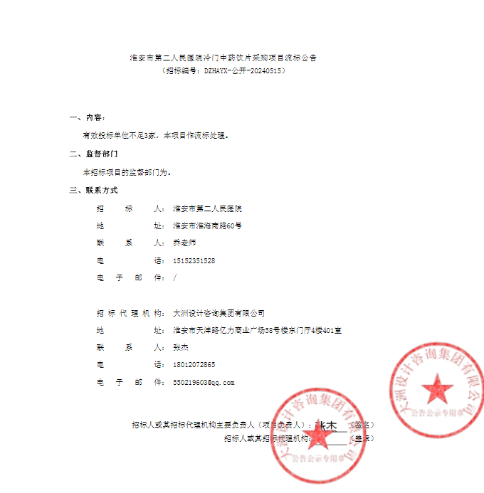 【淮安市第二人民医院】江苏省淮安市第二人民医院冷门中药饮片采购项目流标公告