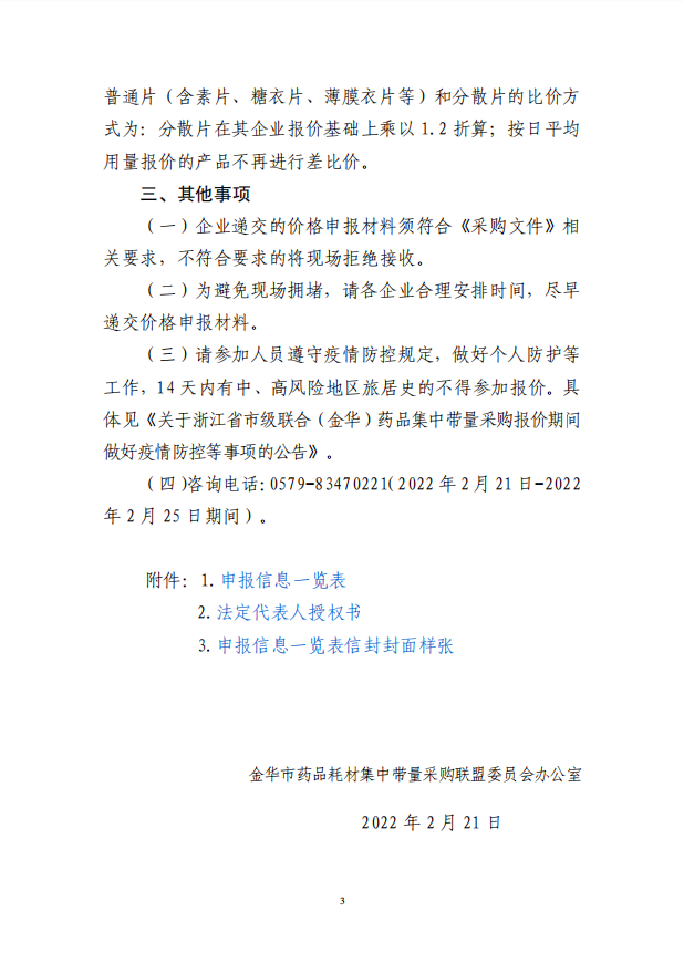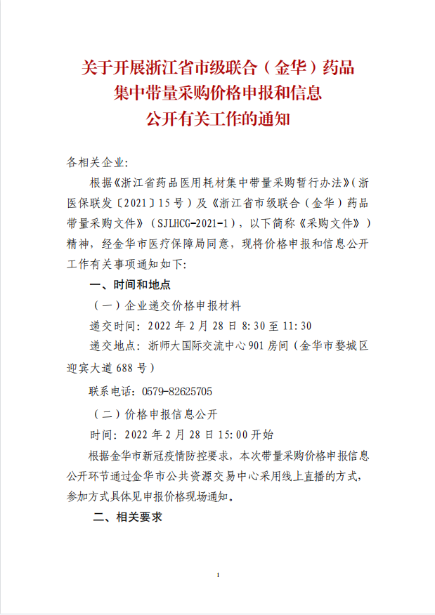 【金华】关于开展浙江省市级联合(金华)药品集中带量采购价格申报和信息公开有关工作的通知