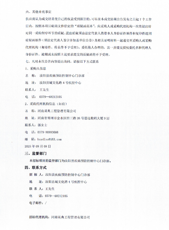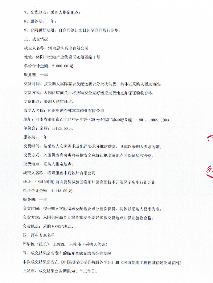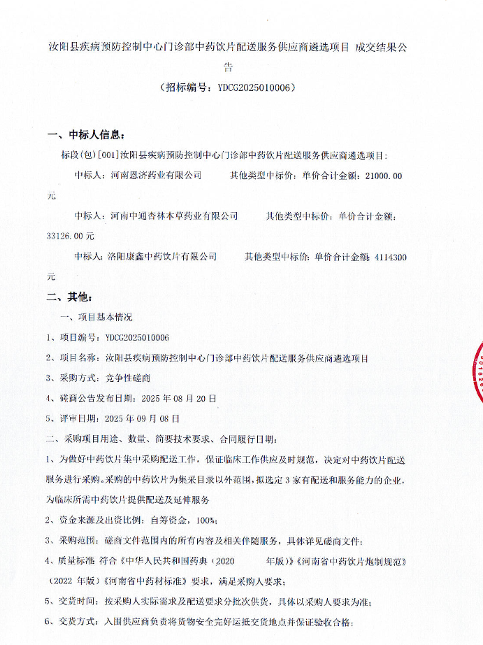 【洛阳市汝阳县疾病预防控制中心】河南省洛阳市汝阳县疾病预防控制中心门诊部中药饮片配送服务供应商遴选项目成交结果公告