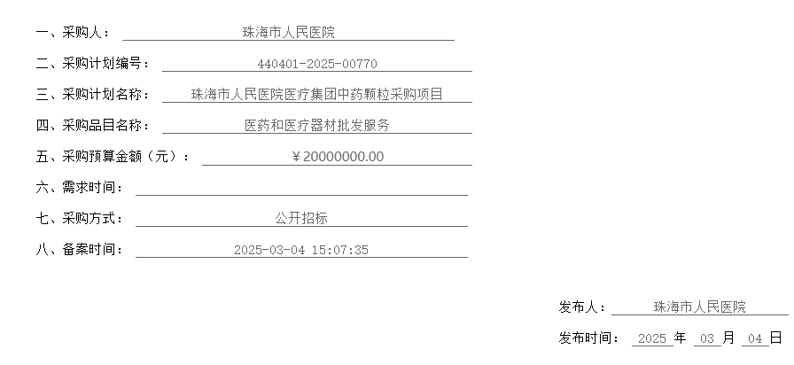 【珠海市人民医院】广东省珠海市人民医院医疗集团中药颗粒采购项目
