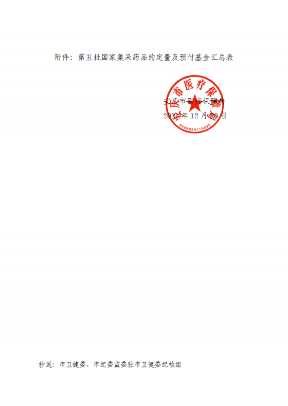 【安庆】安徽省安庆市关于做好第五批国采药品采购和预付基金的通知