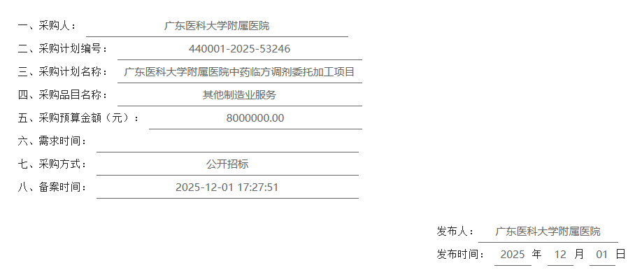 【广东医科大学附属医院】广东医科大学附属医院中药临方调剂委托加工项目