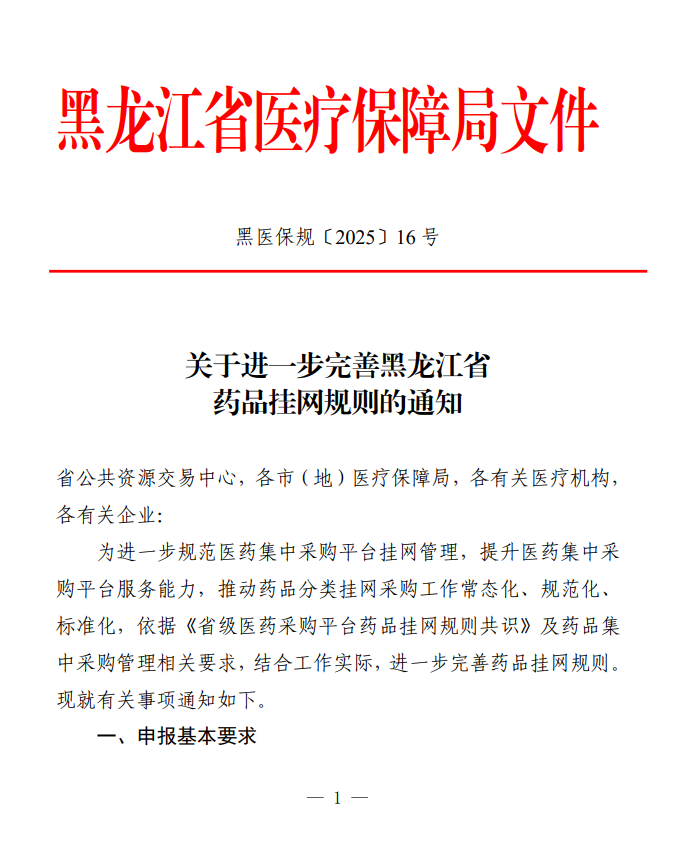 【黑龙江】关于进一步完善黑龙江省药品挂网规则的通知