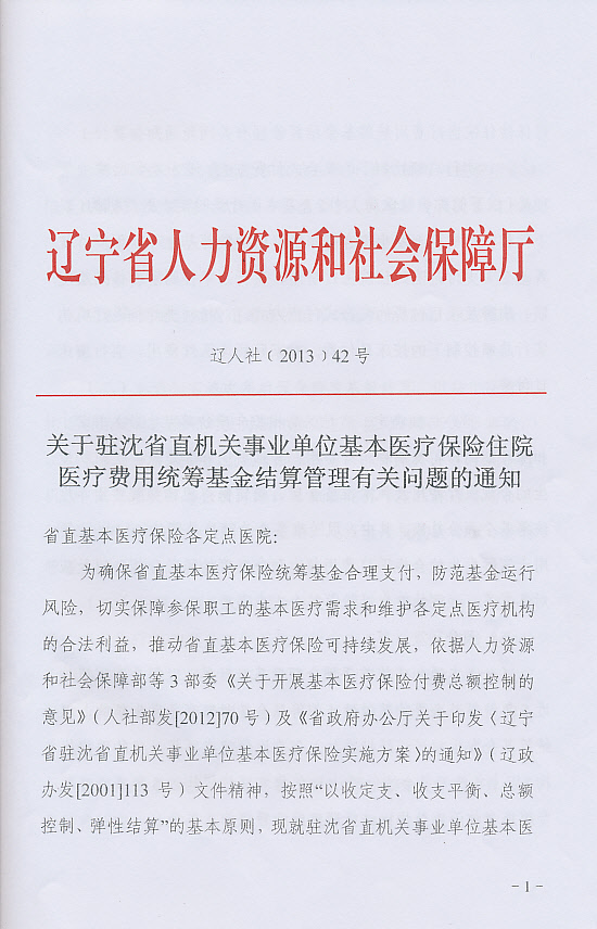 关于驻沈省直机关事业单位基本医疗保险住院医疗费用统筹基金结算管理有关问题的通知