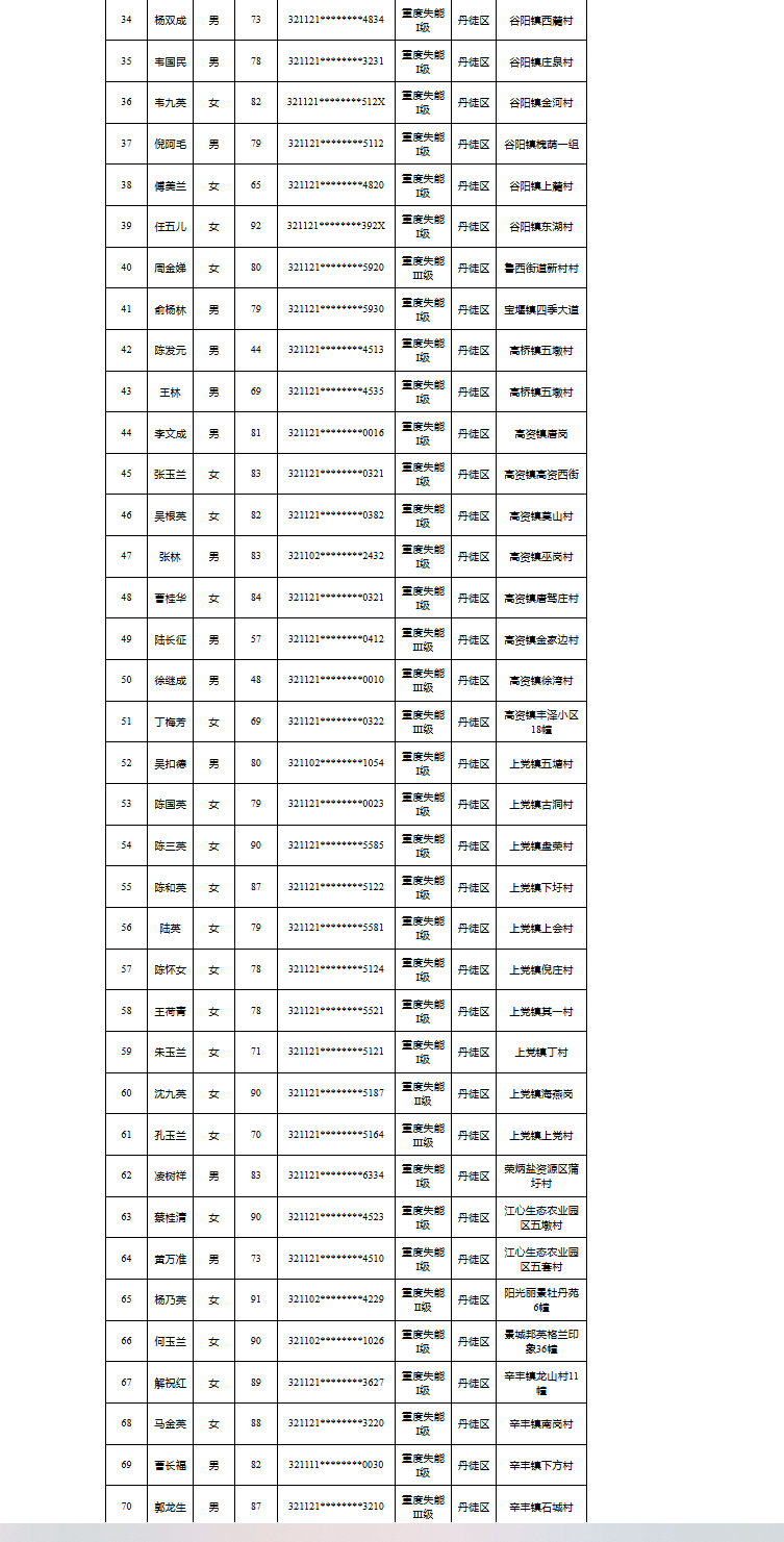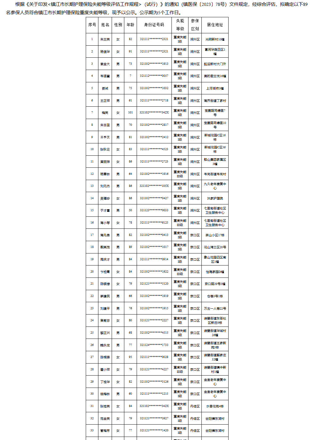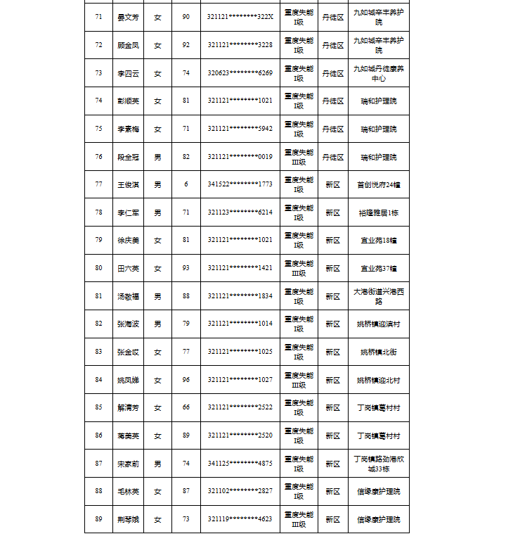 【镇江】2025年度镇江市长期护理保险失能等级评估结论公示(12月第四批)