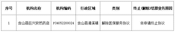 【马鞍山】关于终止解除零售药店医疗保障服务协议管理名单的公示