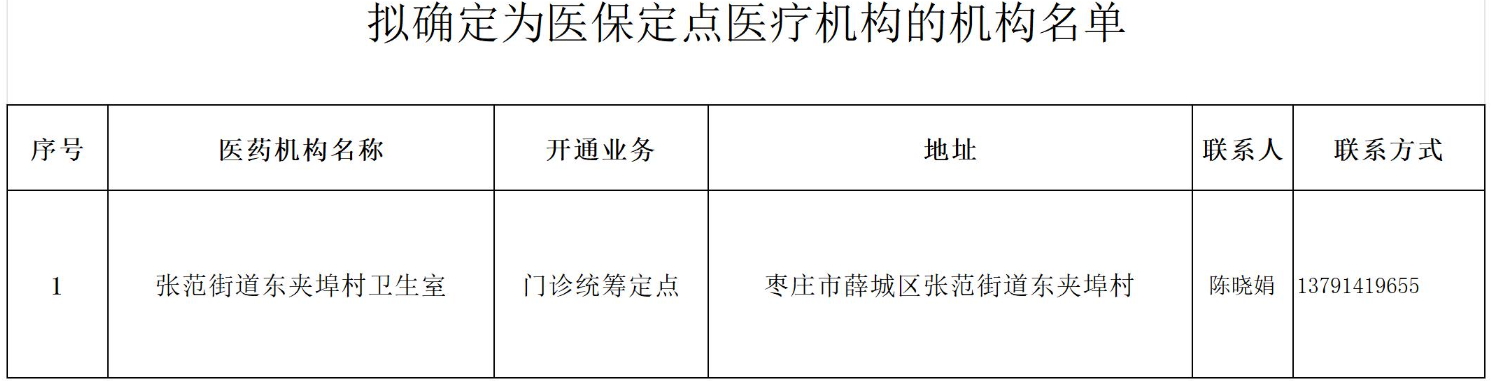 根据《医疗机构医疗保障定点管理暂行办法》(国家医疗保障局令第2号)、《关于印发<枣庄市医疗保障定点医药服务资源配置规划(2025-2027年)>的通知》(枣医保发〔2025〕2号)以及《关于进一步调整完善我市定点医药机构准入评估有关事项的通知》(枣医保中心发〔2025〕1 号)相关要求,薛城区经办机构组织评估小组对申请医保定点的医疗机构开展了评估。现对拟确定为定点医疗机构的单位予以公示(机构信息见附件)。公示期限为5个工作日。公示无异议的,委托区(市)医保经办机构与其签订医疗服务协议后,由市级经办机构统一向社会公布。