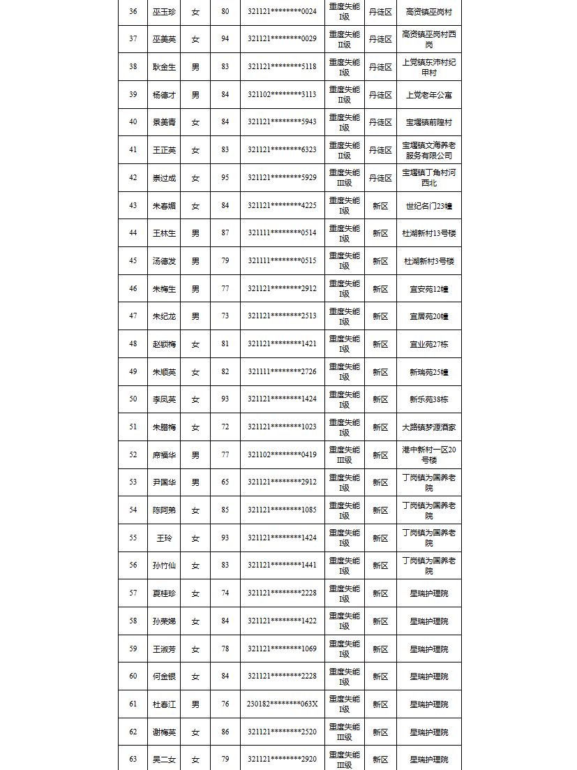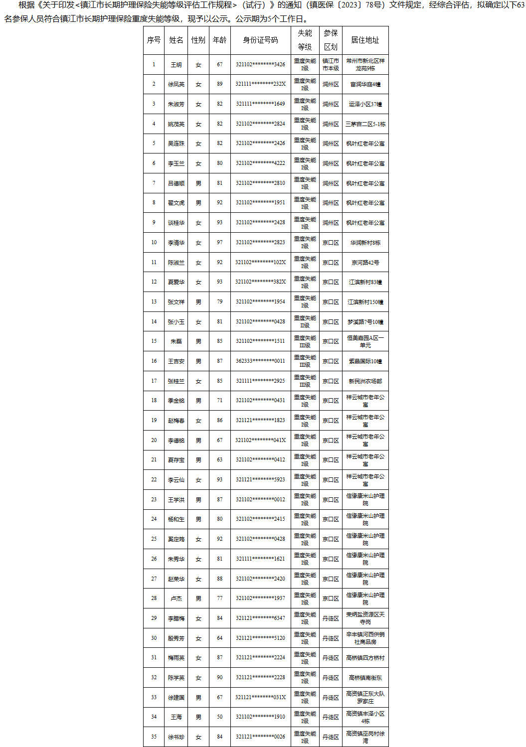 【镇江】2026年度镇江市长期护理保险失能等级评估结论公示(3月第三批)