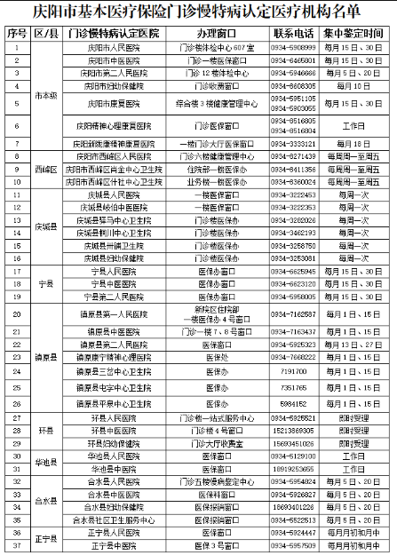 【庆阳】关于公布庆阳市基本医疗保险门诊慢特病认定医疗机构的公告