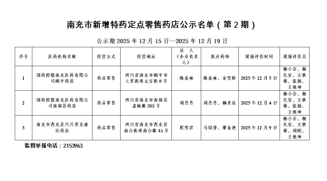 【南充】南充市新增特药定点零售药店公示名单(第2期)