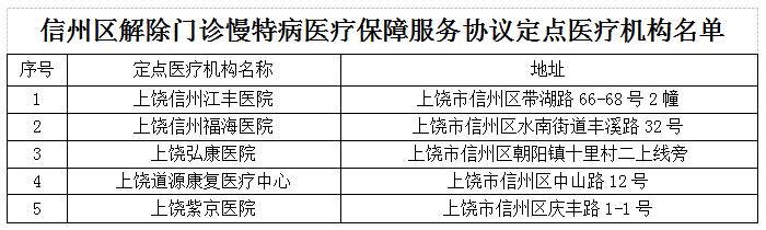 【上饶】关于解除信州区5家定点医疗机构门诊慢特病医疗保障服务协议的公告