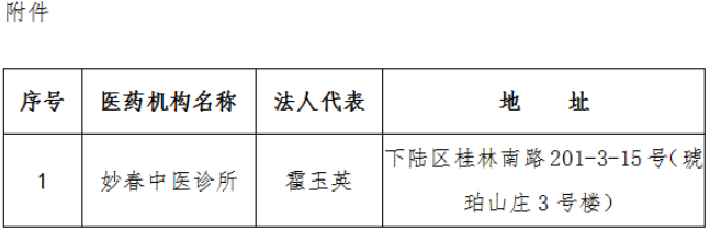 【黄石】关于解除妙春中医诊所定点医疗机构服务协议的公告