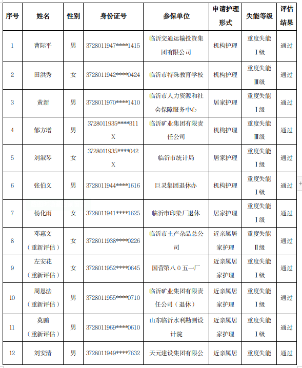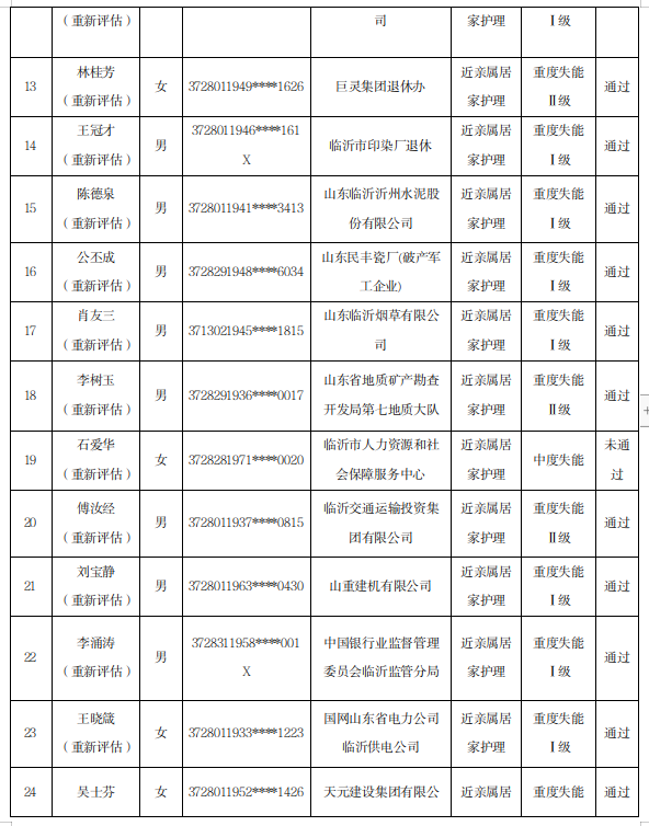 【临沂】关于临沂市市直职工长期护理保险失能人员评估结论的公示(2026年度第二批)