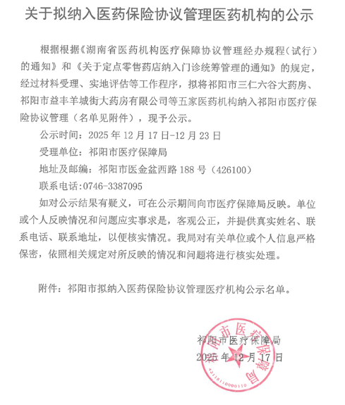 【永州】关于拟纳入医药保险协议管理医药机构的公示