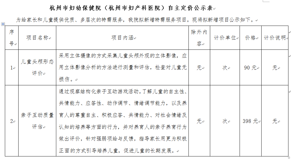 【杭州】关于我院新增自主定价医疗服务项目的公示