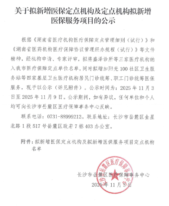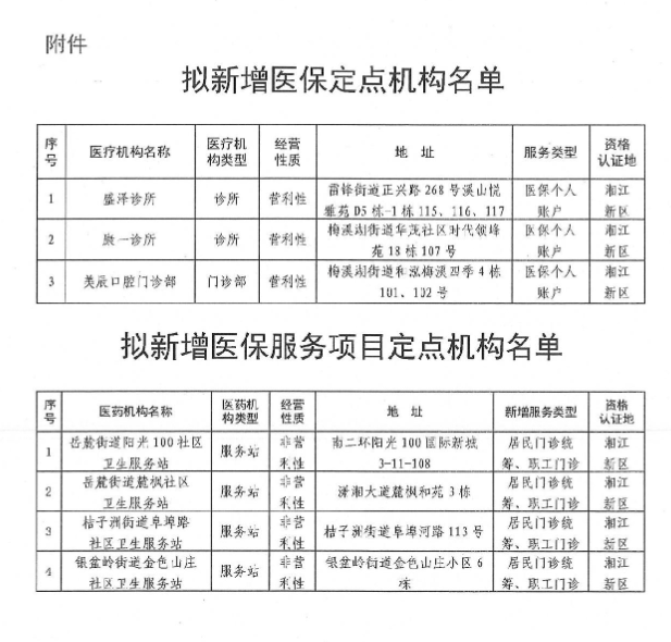 【长沙】关于拟新增医保定点机构及定点机构拟新增医保服务项目的公示