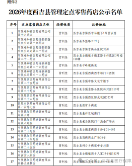 【固原】关于2026年西吉县管理定点医药机构的公示