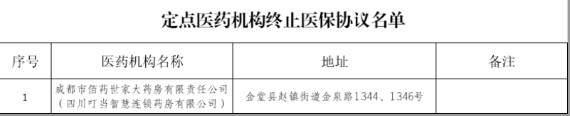 【成都】定点医药机构终止医保协议名单